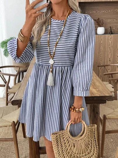 EMERY ROSE 女式条纹圆领泡泡袖休闲宽松短裙蓝白条纹连衣裙夏季休闲连衣裙女式休闲连衣裙长袖夏装条纹夏装秋季女装秋装女式秋季连衣裙秋季服装女式秋季服装秋装女式秋季服装秋冬服装女式冬季外出上衣女式商务休闲女式商务休闲装女式商务休闲装女式乡村服装女式老款基本款女士教师服装外出上衣女式返校秋季女装