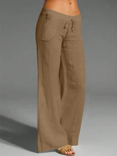 EMERY ROSE 女式白色亚麻休闲口袋长裤,春夏 - 卡其色 - 查看 1