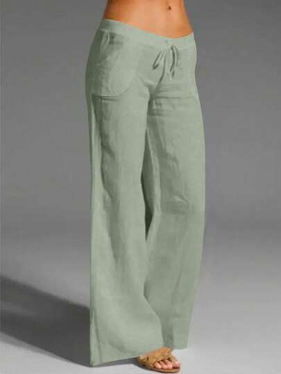 EMERY ROSE 女式白色亚麻休闲口袋长裤,春夏 - 薄荷綠 - 查看 6