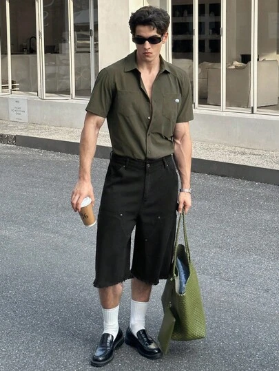 ESTAVOR 男士时尚梭织黑色牛仔短裤 - 黑色 - 查看 1