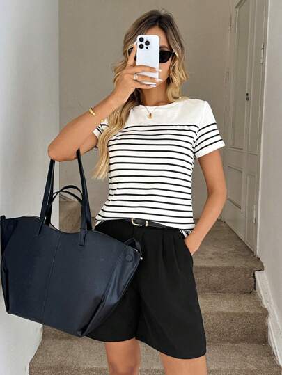 Easowa 條紋印花圓領T恤 - 白色 - 查看 4
