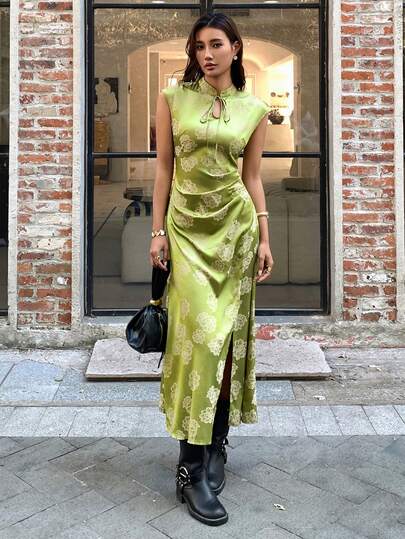 EastFlair 新款中国风绿色提花长裙 - 綠色 - 查看 1