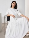 EastFlair 新款中式白色宴会旗袍领扣镂空女士套装(人造毛边下摆)