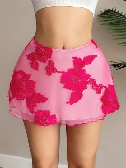 EgrlEra 性感基本款螺旋刺绣紧身迷你裙,芭蕾舞者风格 - 玫紅色 - 查看 1