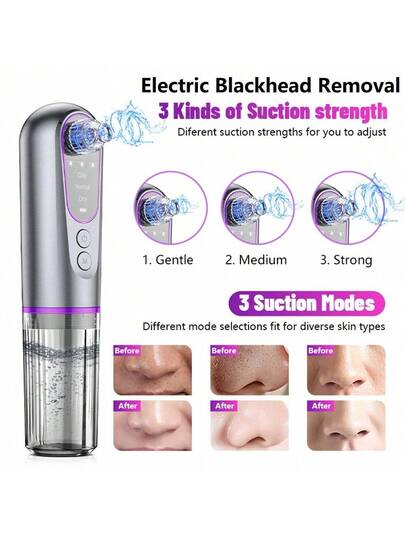 电动去黑头仪器水循环深层清洁面部痤疮清洁工具 USB 可充电 500mAh - 灰色 - 查看 11