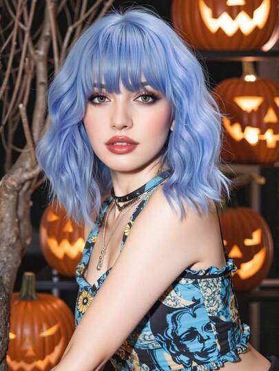 优雅时尚女士假发,14 英寸皇家蓝色耐热合成假发,节日旅行、派对、角色扮演演员假发,日常音乐节、万圣节必备假发 - 寶藍色 - 查看 1