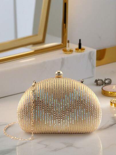 优雅奢华的女士亮片晚宴包、手包、化妆包、单肩包、带金属链的钱包,适合舞厅、婚礼、派对、新娘 - 金色 - 查看 1