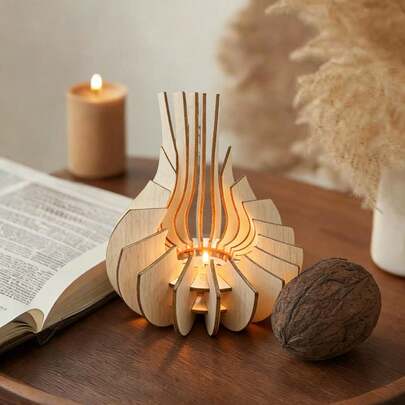 优雅的洋葱形木质烛台,北欧风格桌面摆件,营造氛围的艺术木质烛台,现代简约镂空雕刻茶蜡烛台,DIY家居装饰木质烛台,手工客厅装饰品 - 1PC - 查看 10