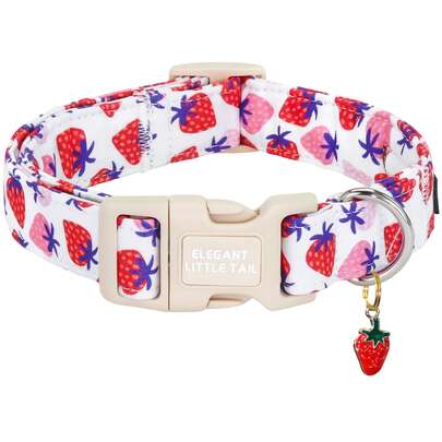 优雅粉色狗狗项圈,饰有可爱草莓图案,可调节宠物项圈,配有快拆扣,适合狗狗佩戴。 - 紅色 - 查看 7