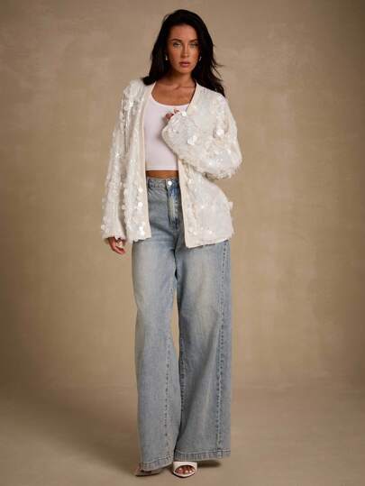 Glamine 优雅性感亮片休闲时尚百搭女式夹克亮片开衫白色亮片开衫女士亮片开衫亮片夹克万圣节婚礼宾客礼服 - 杏色 - 查看 1