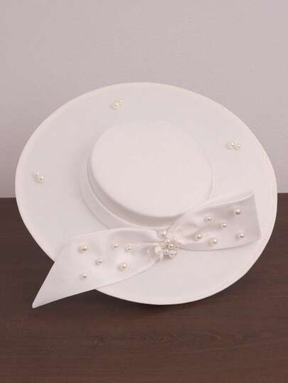优雅宽边蝴蝶白花女士帽子,适合正式舞会装饰教堂礼帽肯塔基帽女士婚礼新娘鸡尾酒茶会礼服平顶头饰帽子 - 1200 - 查看 1