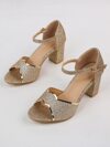 女士简约设计粗跟圆头凉鞋,夏季百搭