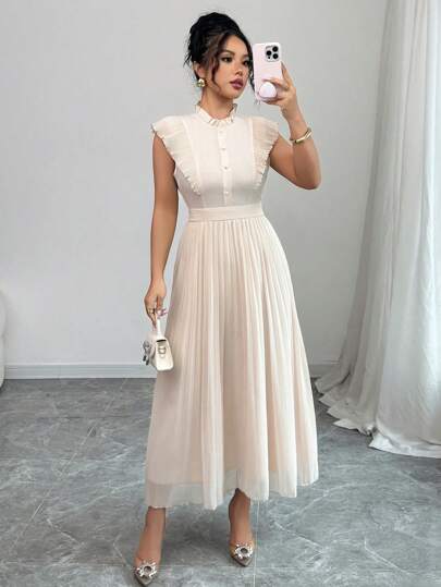 Elenzga 女士优雅褶皱中长连衣裙,夏季