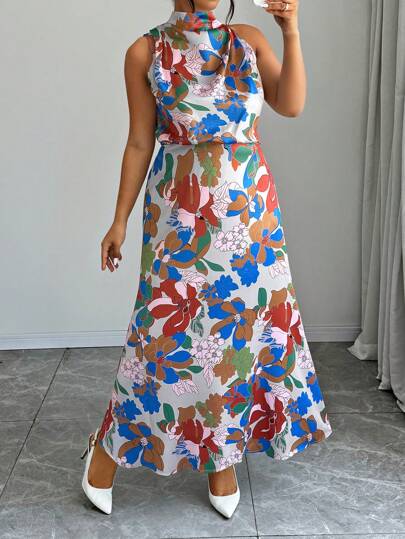 Elenzga 女士花卉印花无袖立领休闲长裙复活节装
