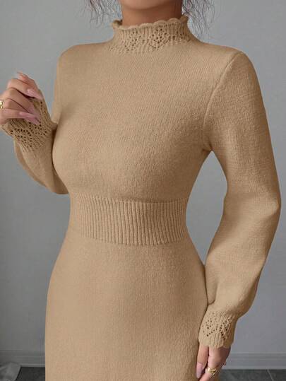 Elenzga 女式纯色高领独特设计修身腰部优雅休闲长袖针织毛衣裙,适合秋冬季