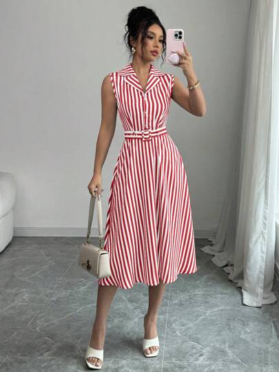 Elenzga 女士夏季条纹无袖中长连衣裙