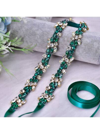 祖母绿钻石婚礼派对腰带,时尚婚礼腰带,适合万圣节、圣诞节 - 墨綠色 - 查看 8