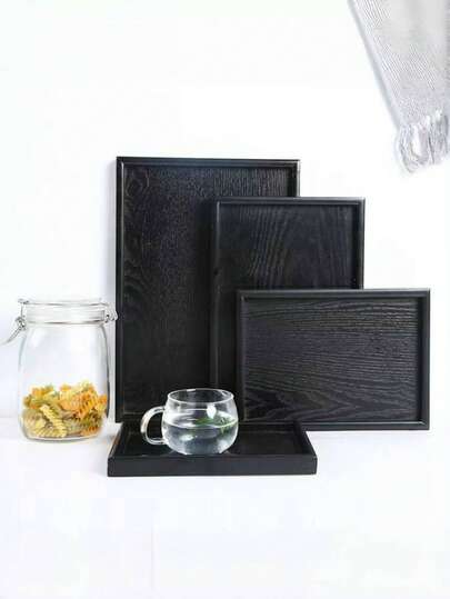1PC 黑色木质托盘适用于咖啡馆、家庭、甜点、茶、面包、小吃和杯子。也适用于食物、蛋糕、沙拉、水果、寿司、饮料、牛排、披萨和带有纹理的哑光饰面服务盘。 - 黑色 - 查看 1
