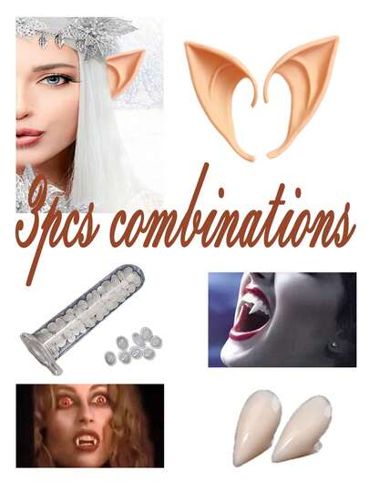 3 件套耳朵派对用品,新款仙女耳朵化妆服装舞会吸血鬼僵尸假牙 - 彩色 - 查看 1