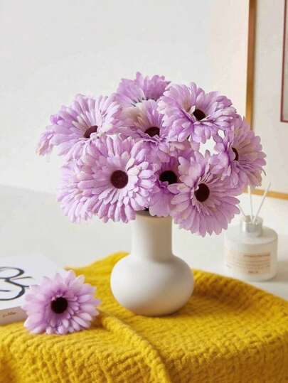 6/12 件非洲雏菊仿真花非洲雏菊丝绸花人造非洲菊假向日葵散装仿真花花束适用于婚礼新娘花束派对家居厨房装饰 - 紫色 - 查看 1