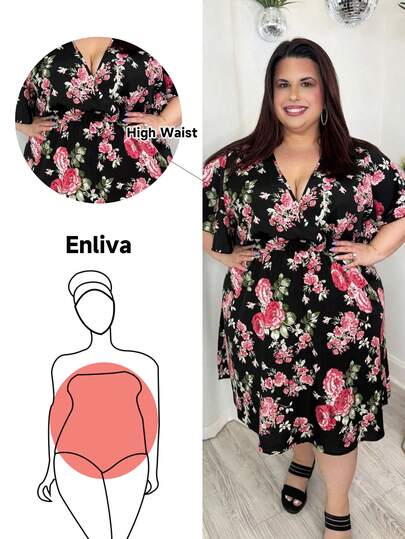 Enliva 加大花卉印花蝴蝶袖A字连衣裙 - 彩色 - 查看 8