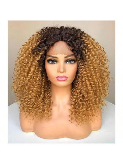DRunM Curly Lace Front Wigs For Black Women Ombre Blonde Kinky Curly Afro Wig For Black Women 13x4x1 HD L Synthetic Lace Front Wig 15 Inch Ombre Blonde 7001 - 漸層金髮 - 查看 1