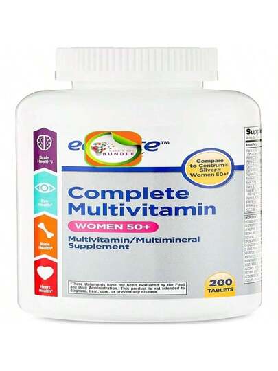 Equate Complete Multivitamin_Multimineral Supplement Tablets, Women 50+, 200 Count + Createandbundle Sticker