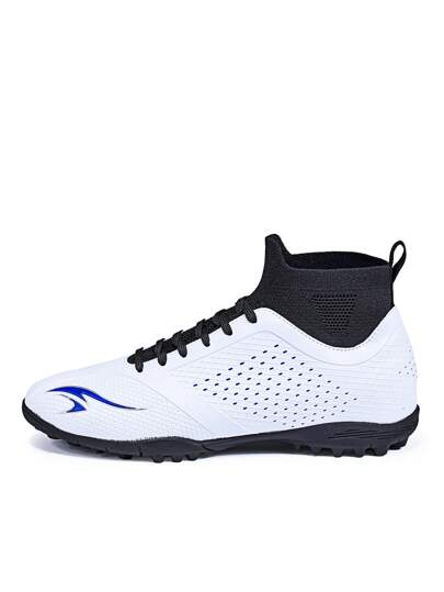 男式足球鞋足球鞋训练运动男孩专业运动鞋户外 AG/FG - 白色 - 查看 2