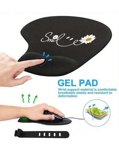 雏菊图案人体工学鼠标垫。包含符合人体工学的EVA腕托、防滑记忆海绵、舒适顺滑的腕部支撑以及亲肤桌面垫/保护套。适用于游戏、办公和家庭使用。是毕业礼物、情人节礼物、母亲节礼物、返校礼物和春季礼物的完美之选。