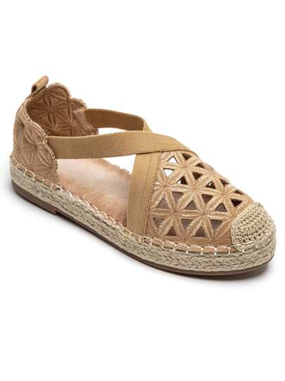 Espadrilles Plates en Dentelle Brodée avec Bride Croisée – Élégance et Confort pour l’Été - 駝色 - 查看 1