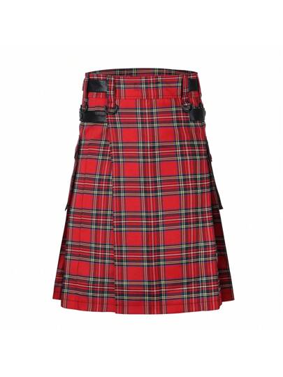 欧美热销男士春季苏格兰节日格子褶裙,红色格子,传统节日必备,适合万圣节、服装、派对 - 紅色 - 查看 1