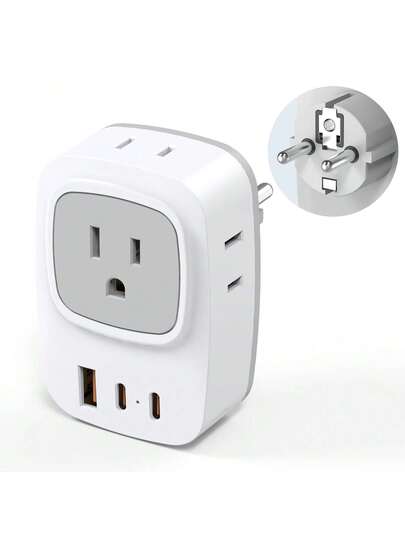 European Travel Adapter With USB C - US To EU Plug Adapter For Germany France Spain Iceland Greece Korea - 3 USB Ports & 4 AC Outlets