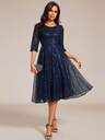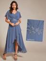 优雅蝴蝶袖花卉亮片婚礼宾客礼服灰蓝色正式晚礼服,适合派对晚宴