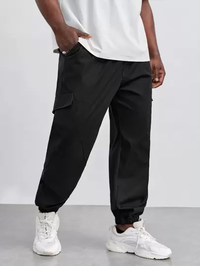 Manfinity 男士側翻蓋口袋工裝褲 - 黑色 - 查看 1