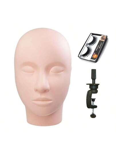 睫毛嫁接练习头,化妆及睫毛嫁接培训头,美容脸部模特头,柔软橡胶质地,易于用护肤油清洁 - 杏色 - 查看 1