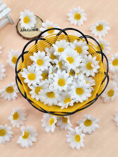 50/100/500 件渐变橙色迷你雏菊花头,逼真的人造花,适用于婚礼派对家居装饰、发夹和头饰 DIY 配饰礼物生日毕业、秋季装饰、秋季 - 白色 - 查看 7