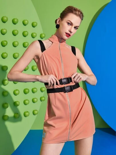 Fátima Tirado 鏤空繞頸搭扣緊身連衣裙 - 珊瑚粉 - 查看 1