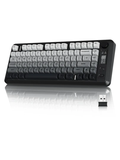 FREEWOLF M75 无线游戏键盘机械手感膜带旋钮和 OLED 显示屏蓝牙/2.4Ghz 彩虹背光渐变 PBT 键帽 2000mAH 电池防鬼影 - 彩色 - 查看 1
