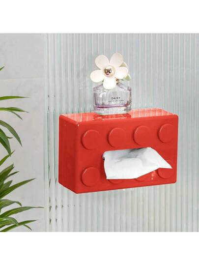 积木纸巾盒创意免打孔壁挂式纸巾盒弹簧纸巾架浴室防水纸巾盒开学季 - 紅色 - 查看 1