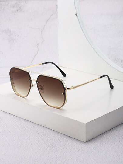 1副男士金属框方形时尚眼镜,适合日常佩戴,复古時尚眼鏡配饰,沙滩配饰眼镜時尚眼鏡 - 棕色 - 查看 1
