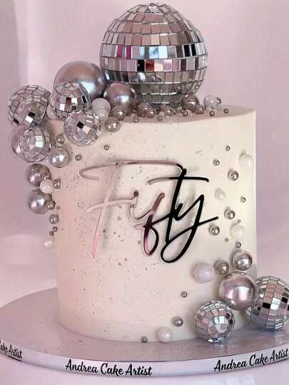 5/10/20 件银色玻璃迪斯科球蛋糕装饰 - 适合 70 年代主题派对、生日和蛋糕 - 无羽毛,耐用玻璃材质 - 彩色 - 查看 5