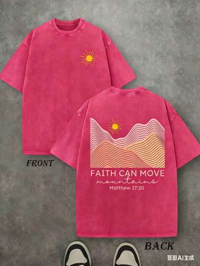 Faith Can Move Mountain Unisex Washed Christian Shirt, Christian Scripture T-Shirt, Vintage Retro Washed Shirt Double Sided Printed (230 Heavyweight Pure Cotton T-Shirt) High Quality Christian T-Shirt, Christian Gifts, Men's And Women's Shirts, Comfortable, Fashion Christian Shirt, Street Style Pure Cotton Fall Shirtwinter Clothes For Women