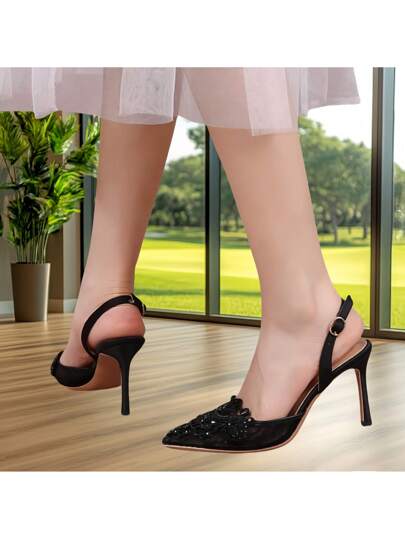 2025 White Wedding Shoes, Women's High-Heeled Sandals, Lace High Heels - 黑色8.5厘米 - 查看 1
