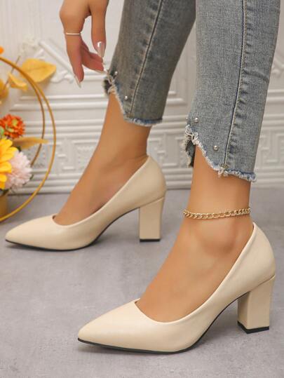 2025秋冬季女士高跟办公鞋,优雅,女士浅口鞋,优雅 - 米色 - 查看 1