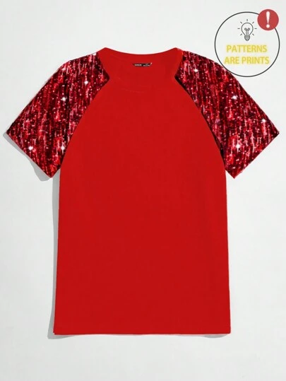 Manfinity VCAY 男式短袖休闲派对领红色图案印花 T 恤 - 紅色 - 查看 1