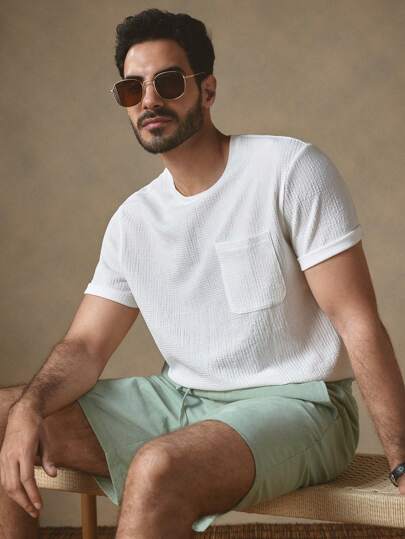 Manfinity VCAY 2 件男士编织撞色圆领修身休闲 T 恤套装,适合夏季 - 彩色 - 查看 6