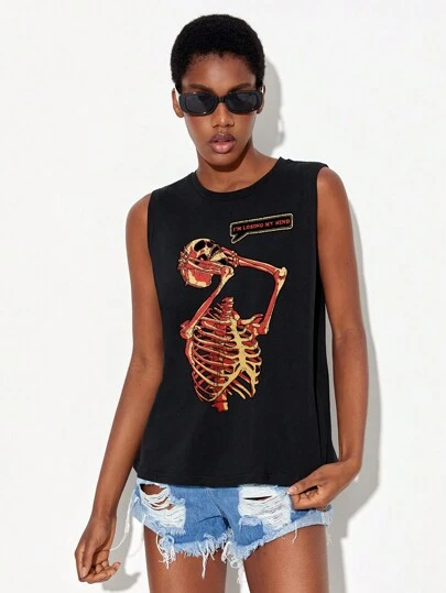Fanfreak 骷髏和標語圖案背心上衣 - 黑色 - 查看 4