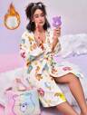 Betty Boop x SHEIN 休闲时尚家居服心形卡通印花甜心领蕾丝花边大码红色女式睡袍,秋季