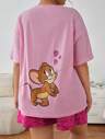TOM & JERRY X SHEIN 2件套男士夏季全印花短袖上衣和短裤家居服套装