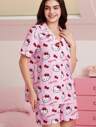 THE POWERPUFF GIRLS X SHEIN 加大码舒适可爱花朵、泡泡、毛茛图案吊带睡袍,夏季